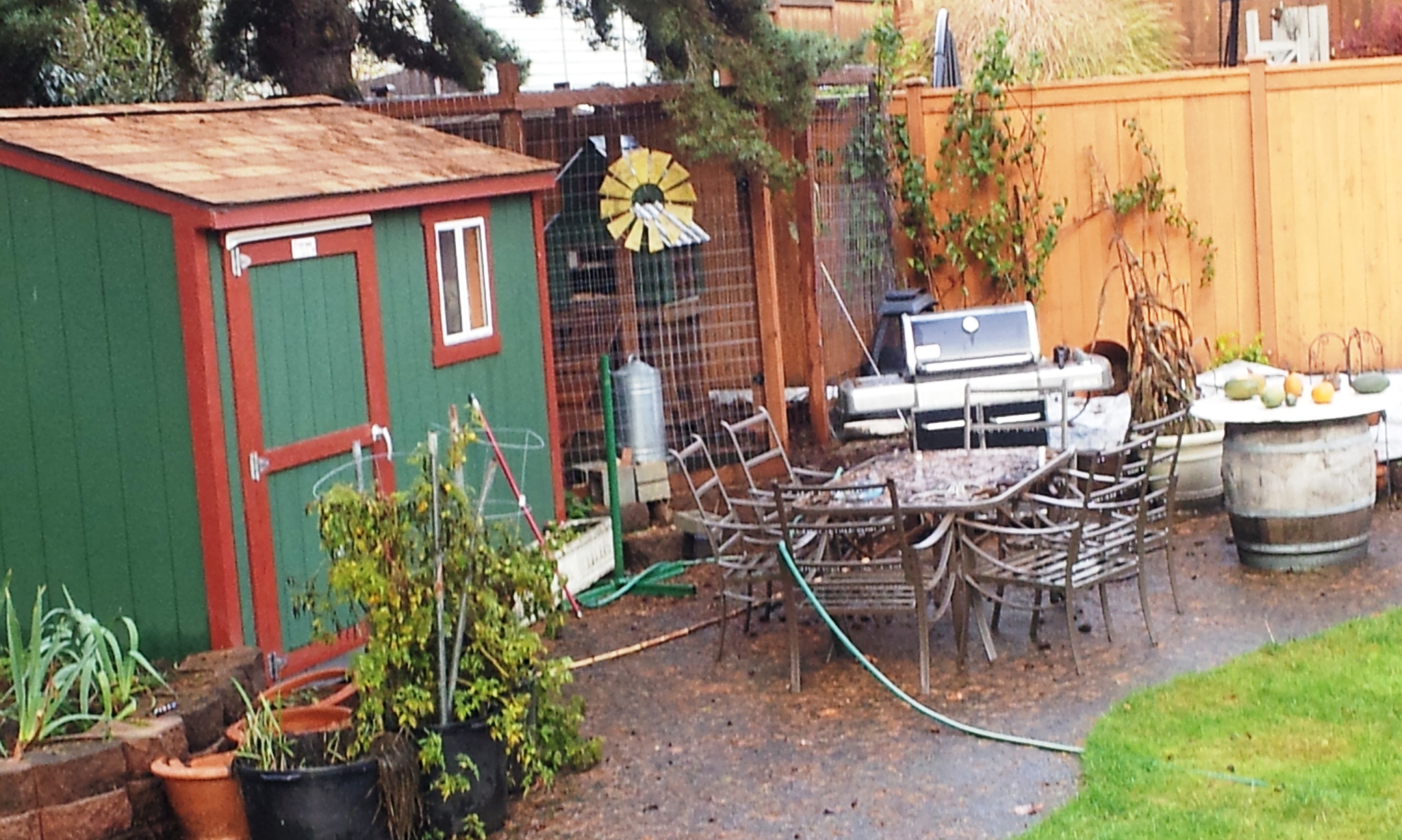 Yes, that is a chicken coop in the left back corner. Our neighbors are taking advantage of Seattle’s City Chickens program.