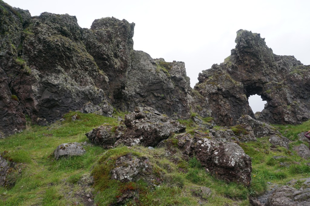 The beginning of our trip was one of the rainier parts of the trip. The rain in Iceland wasn’t heavy but with the wind, which is often blowing and at times, extremely hard, it soaks right through you. I learned after our first short walk of a little over a mile, that rain pants are to be worn at nearly all times. Even when it is not raining, wearing rain pants over my hiking pants was a good wind breaker. We also learned to check the wind forecast in addition to the rain forecast whenever checking the weather report. The high most days there was about 13 degrees Celsius, which is not that warm for summer. We do a lot of hiking in local alpine areas in Washington so we had lots of layers, which we packed. I never had to wear my long underwear but on many days, I wore my t-shirt, a light hoodie, a lightweight puffy coat, a raincoat, a wool hat, gloves, rain pants, hiking pants, wool socks, and waterproof hiking boots.